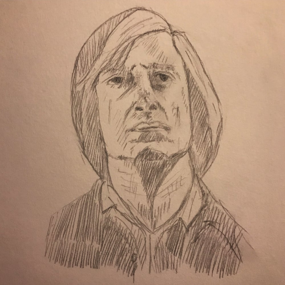 Here’s a charcoal pencil drawing of one of the strangest villains in cinema history. This on a 8x11 heavy stock white paper put in a vintage all white frame.